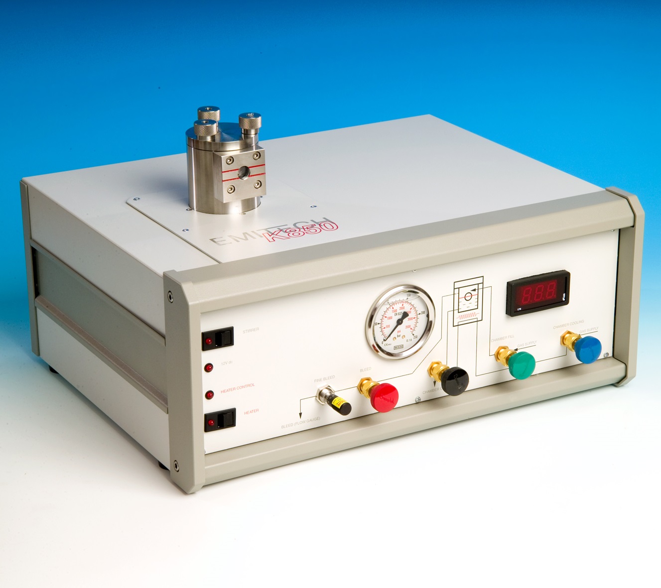 The K850 Critical Point Dryer is fitted with thermo-electronic heating and adiabatic cooling and temperature control of +5°C cooling and +35°C during heating. This allows pre-cooling of the chamber and ensures that the critical point is accurately obtained. The instrument is fitted with three valves: fluid inlet, flushing and a gas venting system which uses a fine needle valve to give controlled pressure let down at the end of the critical point drying process.