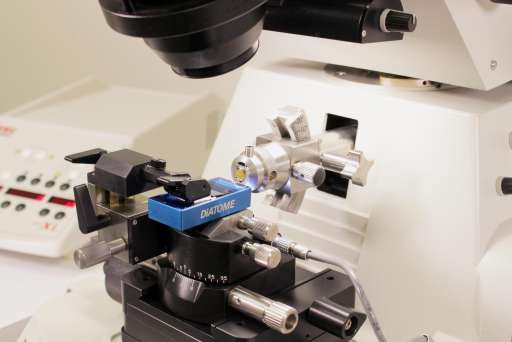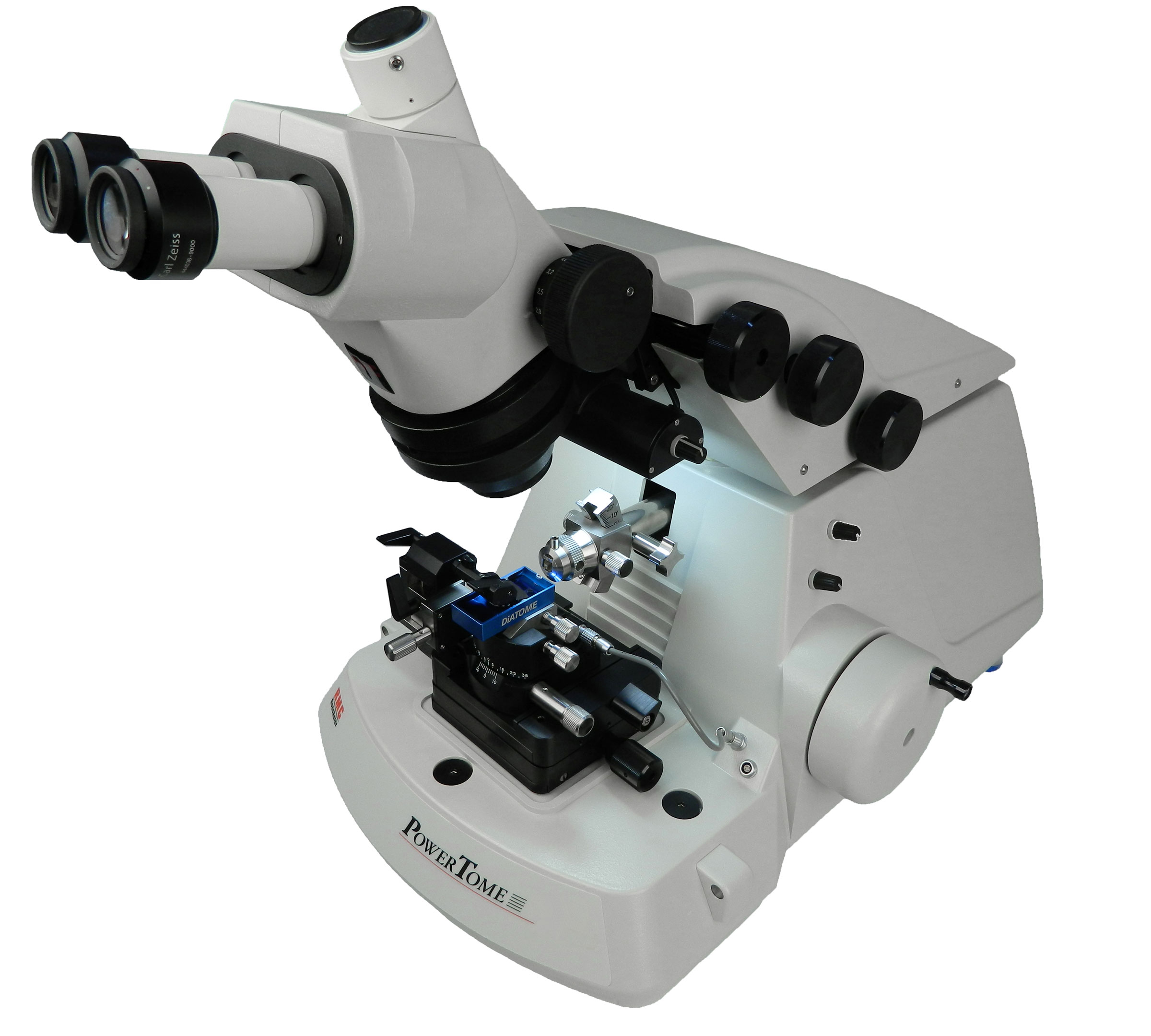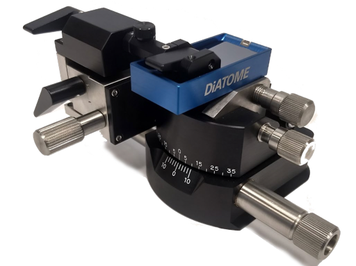 - Quickly locks onto most ultramicrotomes, providing a serial section collection system for SEM and LM 3D reconstruction.