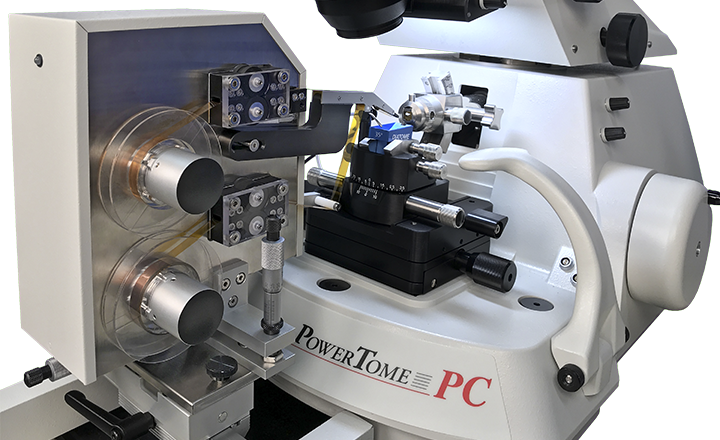 The ATUMtome’s tape collecting part of the system (ATUM) is under license from Harvard University where Professor Jeff Lichtman, PhD, MD, and his team designed the instrument to help collect ultrathin sections to help reconstruct the brain’s neural pathways — a precursor to one day mapping the entire human brain.