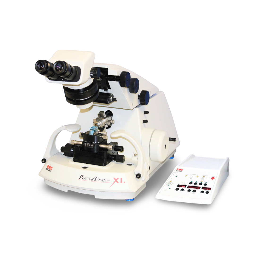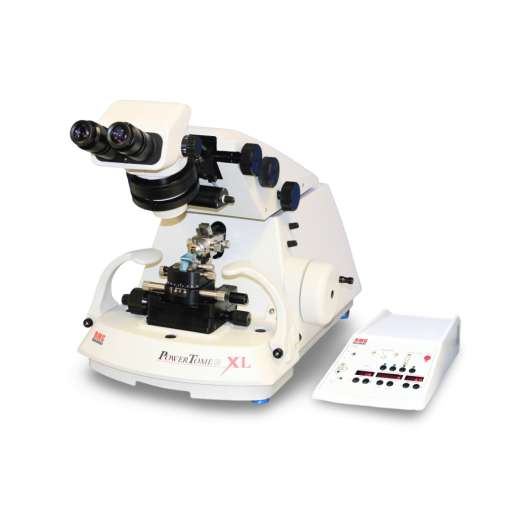 The Powertome from RMC Boeckeler is a high-precision ultramicrotome with an advanced antivibration system. It features the unique PowerDrive, a high stability cutting arm drive system with zero backlash. With several specimen holders and knife stages, this system can be configured to suit individual preferences and research needs.