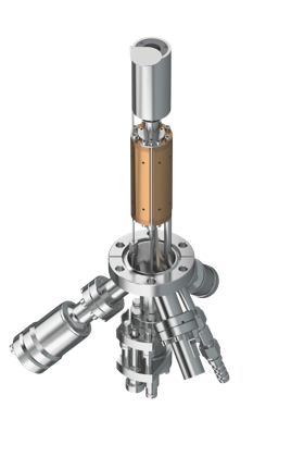 The three different exit apertures allow to adapt the evaporation area exactly to the size of the sample. Evaporation rates varying from 1/10 monolayer per minute to over 1000 monolayers per second can be achieved by selection of the appropriate crucible and e-beam power.