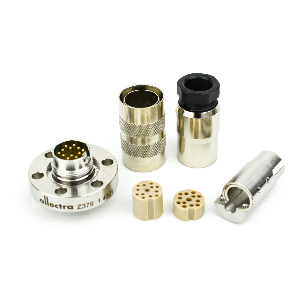 The industry standard air side connectors are shielded and EMC compliant. All air side connectors are metric threads. Used in combination with vacuum side housing, it is possible to achieve a fully shielded connection from air to vacuum.