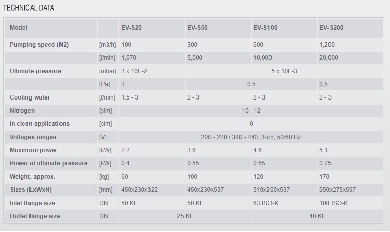 Model EV-S Dry Vacuum Pumps